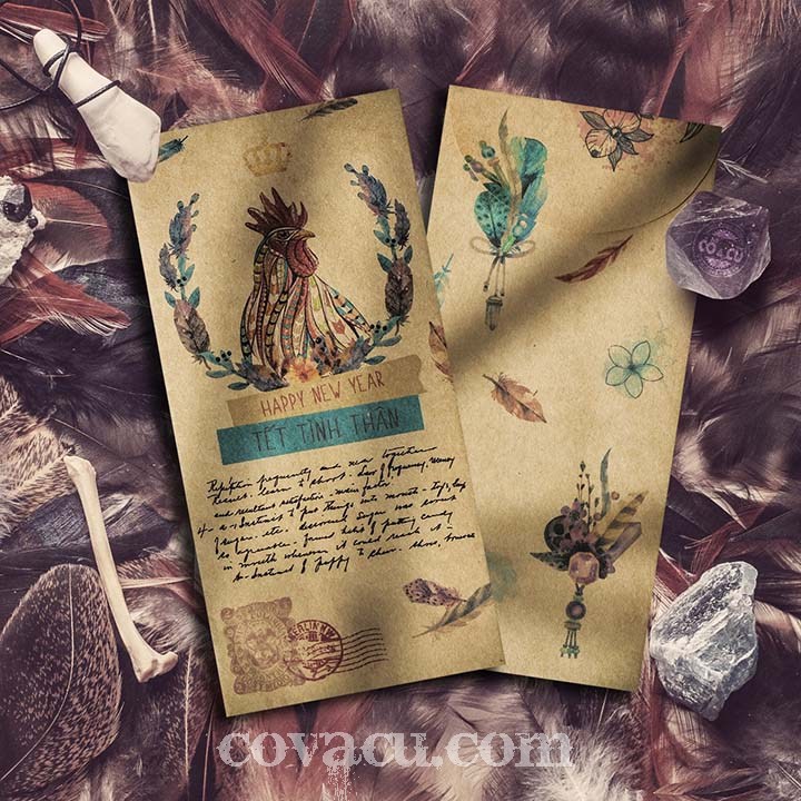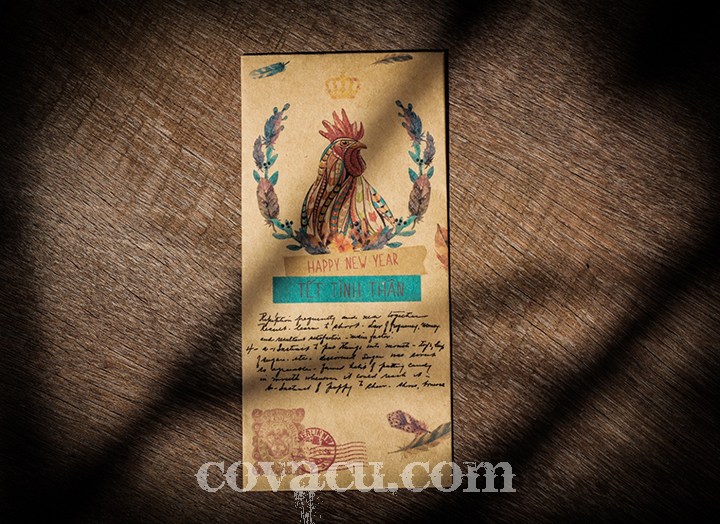 Thiết kế bao lì xì với phong cách Vintage cổ điển cùng chút hài hước, hóm hỉnh với hình ảnh chú gà trống oai vệ, đĩnh đạc.