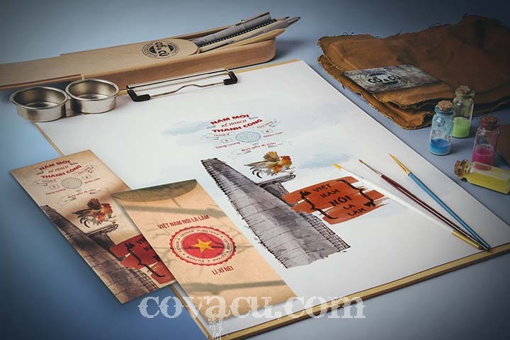 - 1 set = 5 cái, giá 20.000 đồng/setHình ảnh chú gà trống oai vệ đang "vươn mình ra biển lớn", đón đầu mọi cơ hội trong năm mới đầy tài lộc.