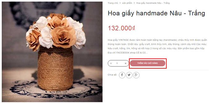 Bước 1: Thêm sản phẩm bạn cần mua vào giỏ hàng bằng cách click vào nút “Thêm vào giỏ hàng”