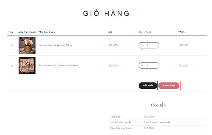 Bước 3: Thanh toán sau khi lựa chọn sản phẩm cần mua xong