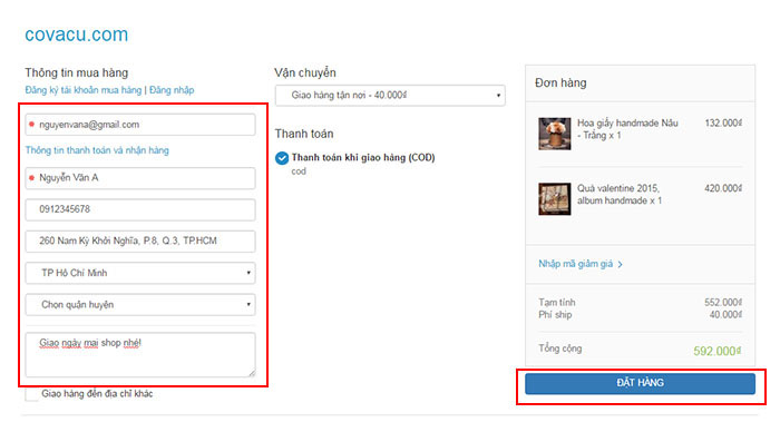 Bước 4: Điền đầy đủ thông tin rồi bấm nút “Đặt hàng”