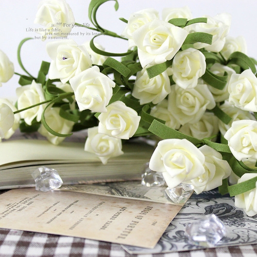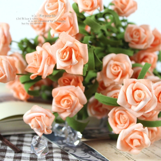 Được làm bằng chất liệu PE (Foam) bền đẹp với 5 màu sắc: hồng, hồng đậm, xanh và tím. Mỗi cành cao 48cm, đường kính một bông 2cm, 1 cành hoa gồm 10 bông. Đây sẽ là món quà ấn tượng hoặc vật trang trí độc đáo cho không gian thêm khác lạ.