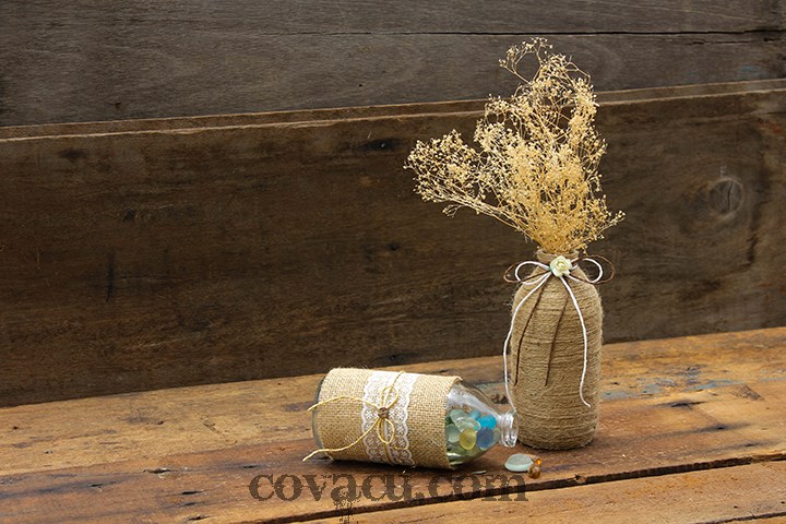 Bằng các vật liệu đơn giản, đã qua sử dụng: chai lọ thủy tinh, dây thừng, cộng một chút khám phá, sáng tạo và khéo léo, những sản phẩm chai thủy tinh quấn thừng mang dáng vẻ xinh xắn, tô điểm cho không gian thêm chất và lạ.