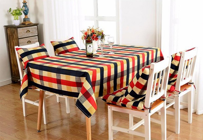 Với sự tẻ nhạt và đơn điệu của bàn ăn, thì chiếc khăn trải bàn như một biện pháp “cứu cánh” hữu hiệu, họa tiết không lỗi thời, quen thuộc và khá được lòng người dùng, dễ dàng phối với bàn, ghế, đồ vật xung quanh tạo thành không gian đẹp và hút mắt, bạn chỉ cần xem xét họa tiết bản to, nhỏ và phối trộn màu sắc giữa các đường sọc xen kẽ sao cho hợp lý nhất.
