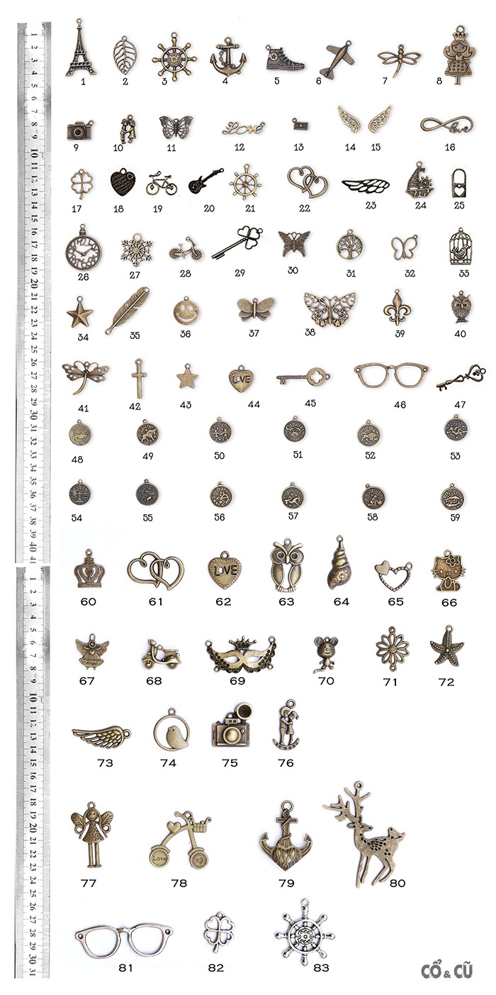 - Chọn charm trang trí và vị trí muốn đính trên bao da passport (miễn phí 1) theo bảng charm bên dưới