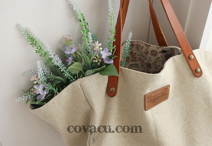 Túi xách may bằng vải canvas trơn không họa tiết rất nhẹ nhàng mà không kém phần cá tính