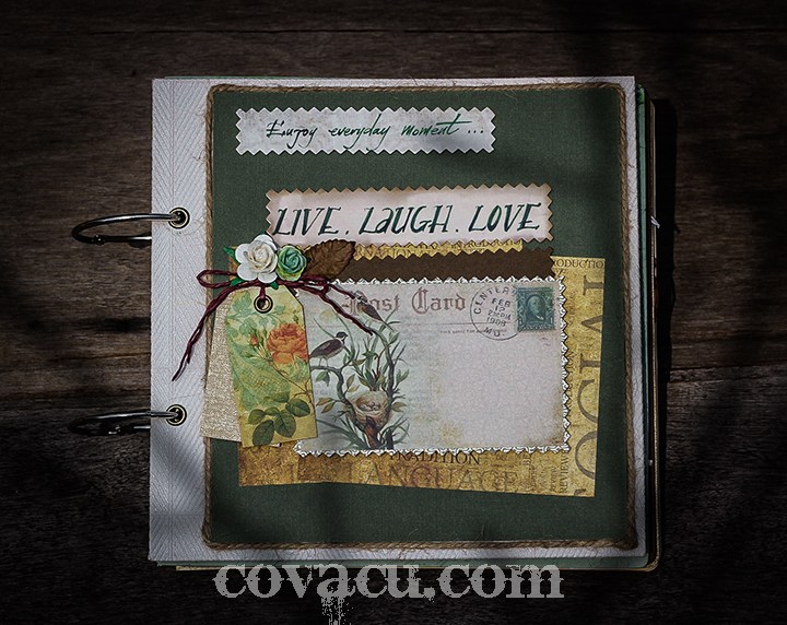 Scrapbook được làm hoàn toàn thủ công, được chăm chút đến từng chi tiết nhỏ nhất. LIVE.LAUGH.LOVE có chất liệu giấy cứng, khổ 20*20 cm, có thể dán được 40-60 hình với khổ hình khác nhau, đường nét tinh tế, cổ điển và lãng mạn sẽ là món quà tuyệt vời nhất cho bản thân hoặc người thân của bạn.