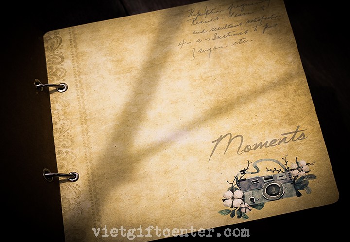 Lấy ý tưởng cánh đồng lúa chín vàng, scrapbook handmade Sweet Moments mang thiết kế dành riêng cho mùa thu lãng đãng dịu dàng. Scrapbook handmade Sweet Moments được lên ý tưởng và thực hiện 100% bởi Cổ & Cũ Gift, sản phẩm có hộp đựng vô cùng xinh xắn.